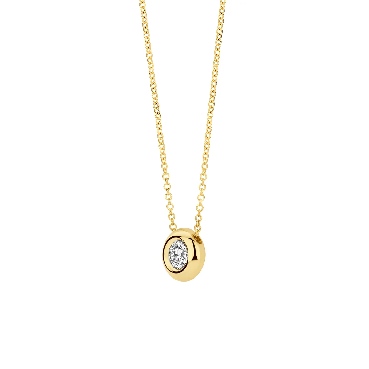 Dit 14k geelgouden collier is uitgevoerd met een briljant geslepen lab grown diamant in een gladomzetting, verwerkt in een ronde hanger van ⌀ 6,6 mm en hangend aan een fijne ketting van 42 cm. Lab grown diamanten hebben dezelfde schittering en kwaliteit als natuurlijke diamanten en zijn een bewuste keuze. De gladde omlijsting geeft het ontwerp een zachte, moderne uitstraling, terwijl de diamant als een ingetogen lichtpuntje meebeweegt met elke stap. Een verfijnd sieraad dat voelt als een dagelijkse touch van elegantie.