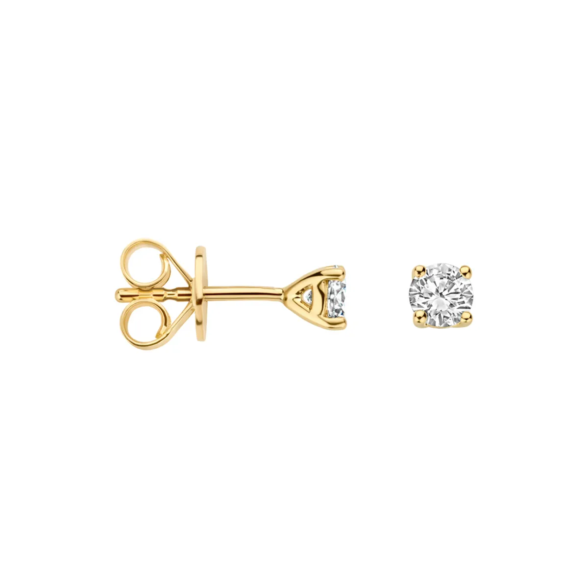 Deze 14k geelgouden oorknoppen zijn gezet met briljant geslepen lab grown diamanten van 0,15 ct. Lab grown diamanten hebben dezelfde schittering en kwaliteit als natuurlijke diamanten en zijn een bewuste keuze. De iets grotere stenen geven deze klassiek vormgegeven oorknoppen een heldere, opvallendere sparkle, terwijl de uitstraling verfijnd en elegant blijft. Perfect om solo te dragen of te combineren met meerdere oorsieraden voor een meer uitgesproken look.
