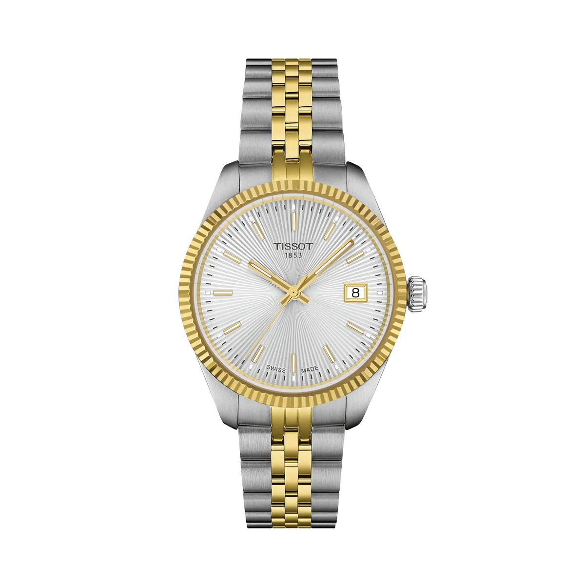 Met de Ballade-collectie brengt Tissot de erfgoedlijn uit 1994 opnieuw tot leven, ditmaal in een sierlijk, eigentijds formaat. Deze 34 mm uitvoering is de gouden tegenhanger binnen de reeks: een compact model dat het beste van 316L-edelstaal combineert met goudkleurige PVD-accenten voor een warme, klassiek-moderne uitstraling.