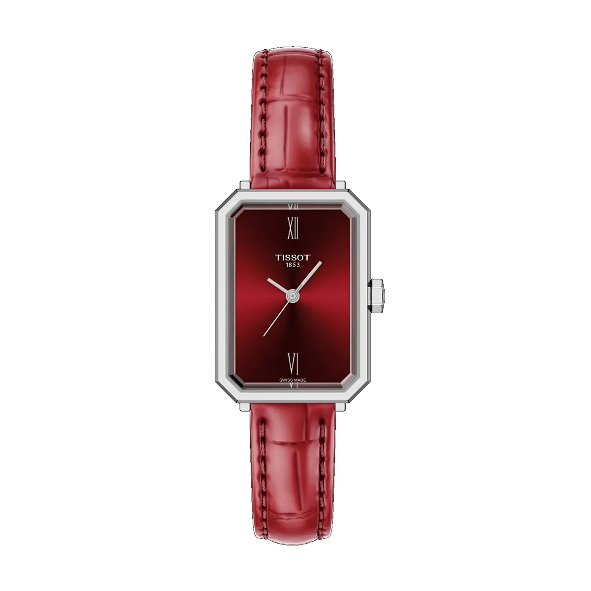 Opvallend en bescheiden: dit horloge uit de Tissot SRV 30 mm collectie valt direct op door zijn uitgesproken uitstraling terwijl het gelijktijdig toont hoe je kunt uitblinken in eenvoud. De rechthoekige edelstalen kast omlijst een dieprode sunray wijzerplaat, die bij wisselend licht telkens een andere intensiteit laat zien. Subtiele Romeinse cijfers en zilverkleurige wijzers maken de look stijlvol en modern.